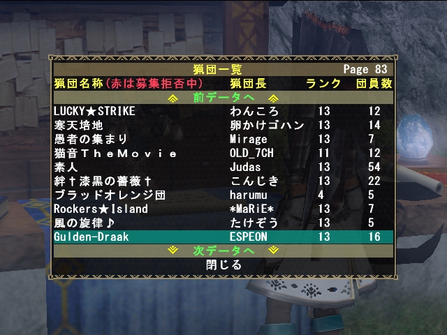 ふと気になることがあり、所属猟団の登録順を検索したところ、