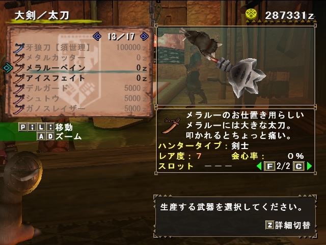 メラルーのお仕置き用らしいちょっと短い太刀